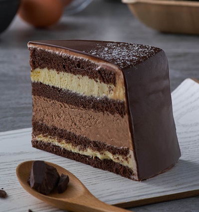 Cocoa sponge with layers of Belgian white and dark chocolate, coated with melted chocolate. It came in different sizes from 6 inches to 11 inches
